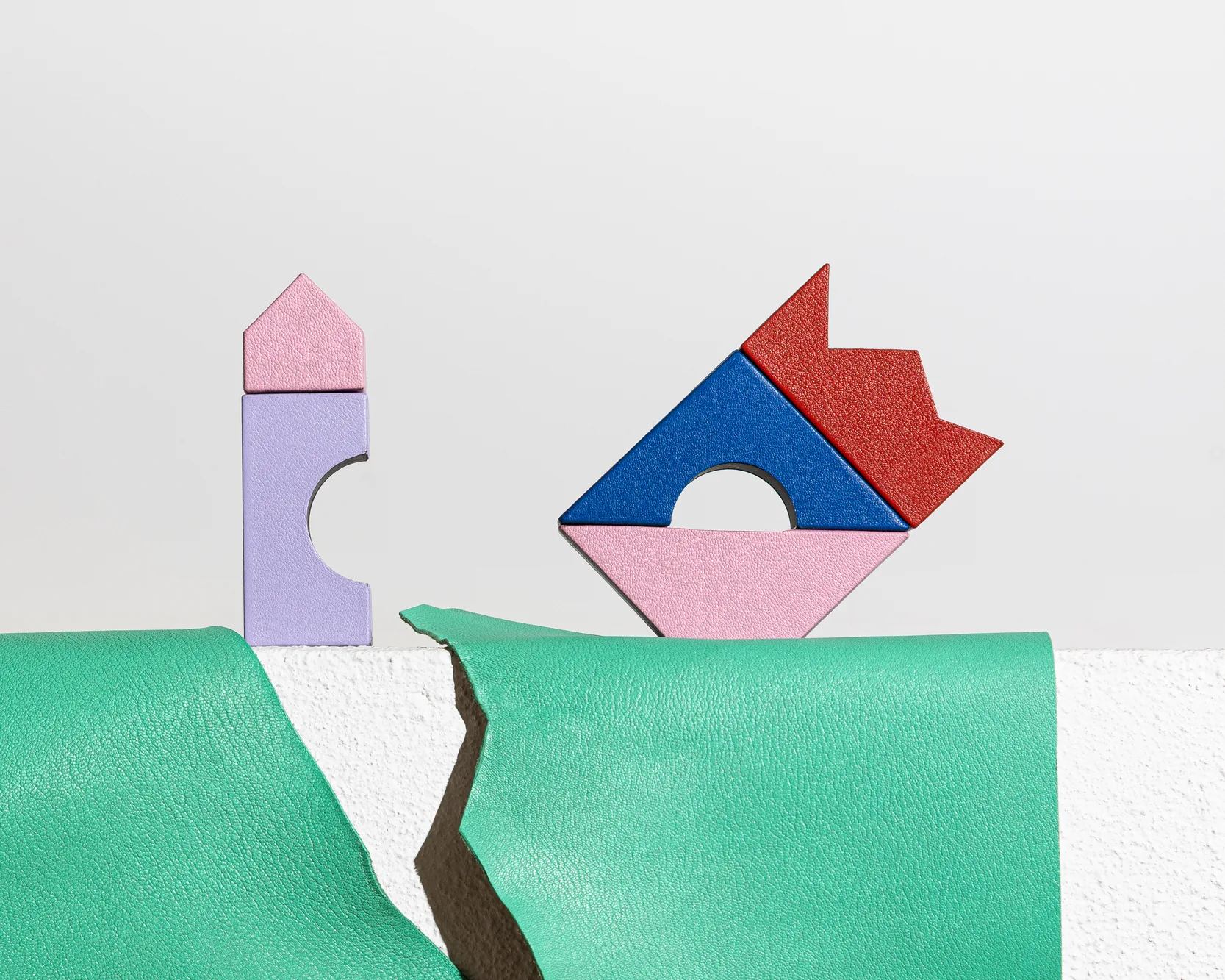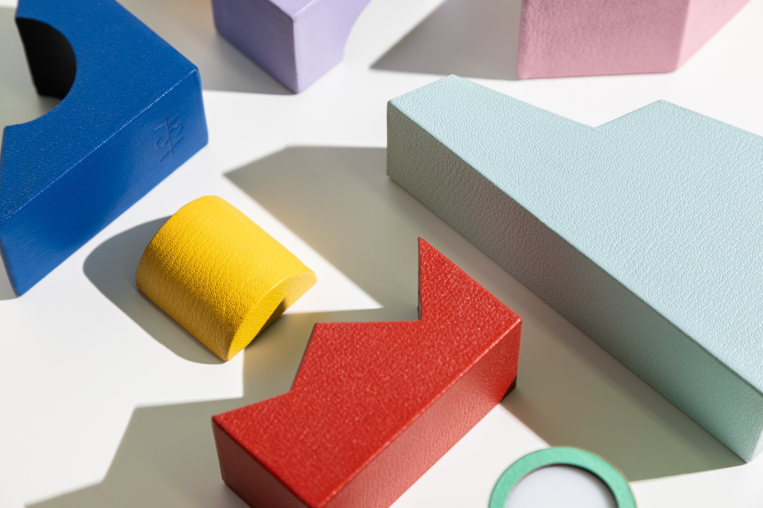 3D printed matte PLA; Chèvre grainée leather – mixed vegetable tanning – Mégisserie Alran; Neodymium magnets.